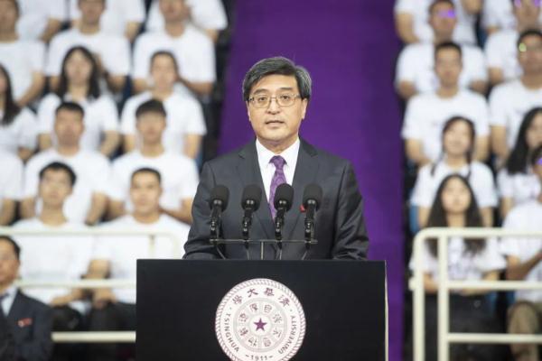 典禮上,校黨委書記邱勇為碩士生新生代表、公管學院李宗陽佩戴清華大學徽章;校長王希勤發表題為“自強為學厚德立業”的講話;蘇世民書院薛瀾教授代表全體教師發言;校研究生會主席、水利系博士生陳星安和博士生新生代表、工物系吳嘉君分別代表在校生和新生發言。副校長姜培學主持典禮。