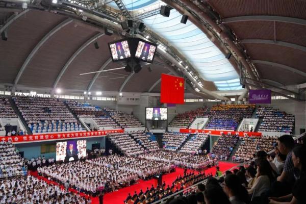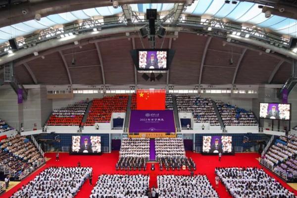 本次開學典禮采用線上線下結合的方式舉行,線下設置綜合體育館主會場和新清華學堂、音樂廳分會場,并通過雨課堂平臺同步直播。2000余名新生在綜合體育館主會場參加典禮,1800余名深圳國際研究生院新生以線上形式參加典禮。學校為新生親友在各院系安排了現場直播。23位新入職教師代表特別受邀參加典禮,共同見證這一美好時刻。