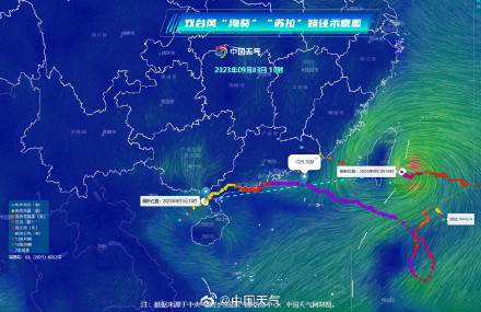截至今天上午10時,臺風“蘇拉”已進入北部灣,與“海葵”之間的距離大概是1300多公里。但是由于“蘇拉”現在已經減弱為熱帶風暴級,云系松散,對于“海葵”的影響微乎其微,兩者之間的雙臺風“藤原效應”并不明顯。