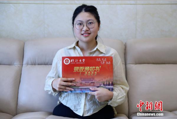 參加今年高考的蔣張子怡收到了臨沂大學的錄取通知書。中新社記者 劉占昆攝