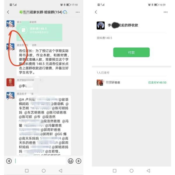 李老師一聽,趕緊打開微信一看,竟然不知什么時候有陌生人進入了班級群,并且微信頭像、群昵稱都與自己的一模一樣,以自己的名義發起了收款,并且還艾特各位家長催促他們交錢。所幸目前只有一個家長轉賬,李老師趕緊在群里提醒各位家長,大家這才意識到遇到騙子了……