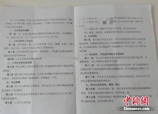 2017年,李月與醫院簽訂的勞動合同,期限為一年。受訪者供圖