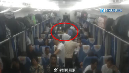 根據事發時執法記錄儀拍攝的畫面顯示,當時,K1502次列車運行在六盤水至貴陽區間時,乘警接到旅客報警求助,稱自己的座位被其他旅客霸占,乘警立即趕往現場處置。