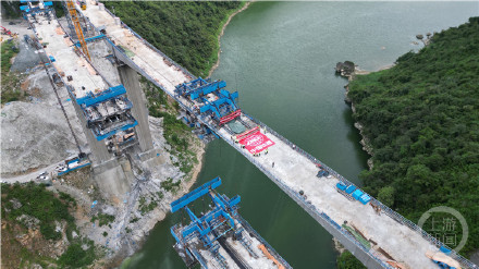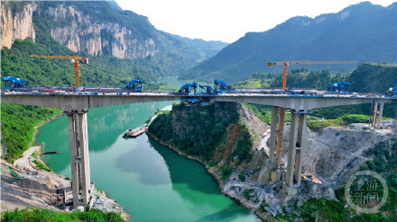 9月3日,上游新聞記者從由中鐵建重慶投資集團獲悉,渝湘復線高速公路控制工程阿蓬江大橋右幅連續剛構順利合龍,標志著該橋的建設進入沖刺階段,預計今年11月底將迎來全橋合龍。(上游新聞記者黎靜)