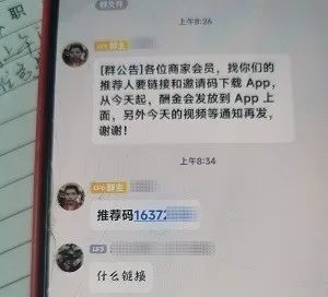“李警官,你們看,我張貼了這個海報,每天只要拍攝視頻到群里,就有20元錢的收益,我已經發了5天,掙到了100元呢!”店老板孫某向民警介紹。