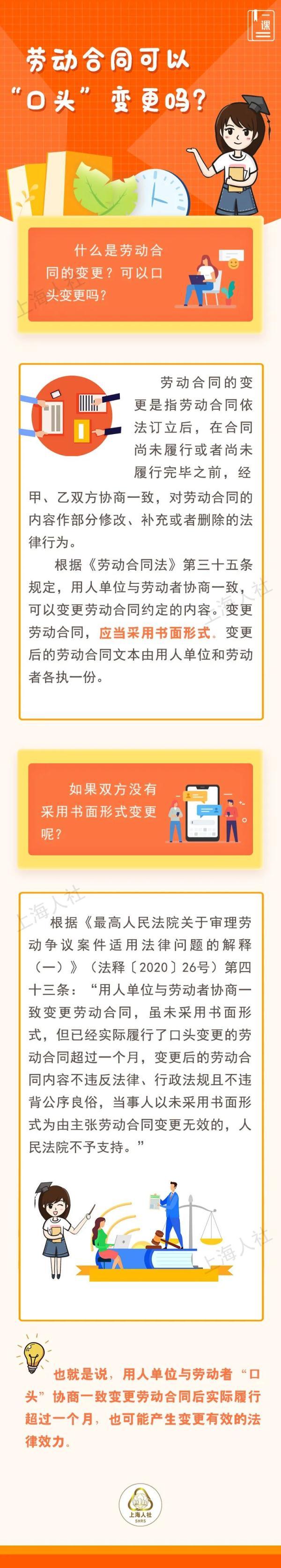 什么是勞動合同的變更?可以口頭變更嗎?企業名稱調整后,勞動合同要重簽嗎?公司被合并后,之前簽的勞動合同還能繼續履行嗎?休產假期間,勞動合同中止履行嗎?來看市人社局制作的圖解↓