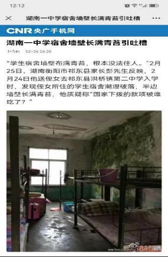 近日,“元氣面條sl02”等自媒體賬號發布關于廣西中小學校舍負面信息的圖文,配有宿舍內墻壁長滿青苔的圖片(見圖1),引起網友的關注和討論。由于相關圖片并未注明拍攝的時間地點,經核查,該圖片實為幾年前某省某中學一女生宿舍的圖片,央廣網于2016年2月進行過相關報道(見圖2)。
