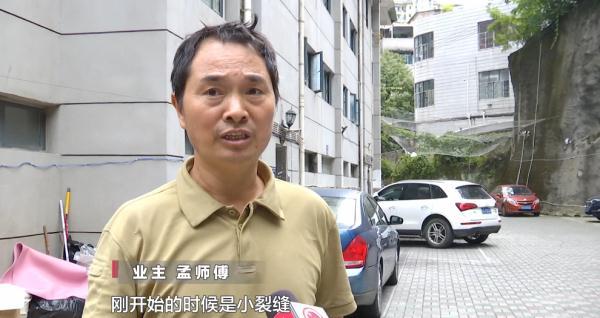 剛開始的時候是小石頭、小裂口,因為這邊這一塊脫落之后就引起的,差一點砸到人了。每天我都在看,墻裂的程度越來越大,我心里面就越來越慌。