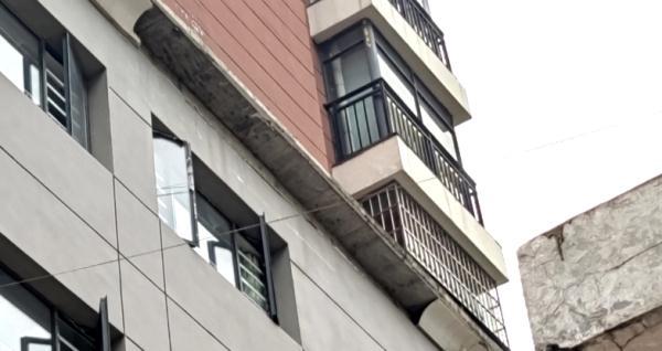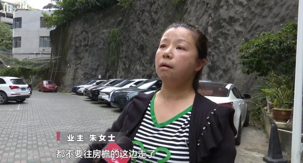 這個房子上面的吊頂落下來,萬一哪天砸到誰,是真的不得了。所以現在我們都通知業主,喊他們盡量往靠邊走,都不要往房檐這邊走。