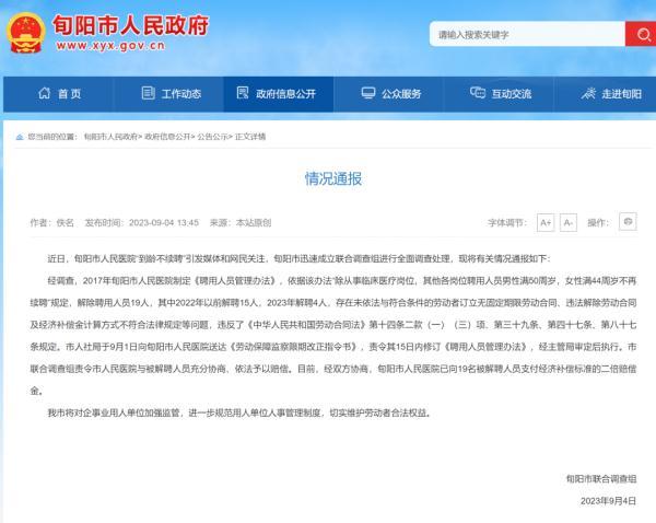 近日,旬陽市人民醫院“到齡不續聘”引發媒體和網民關注,旬陽市迅速成立聯合調查組進行全面調查處理,現將有關情況通報如下: