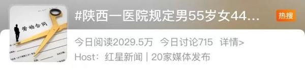 8月31日,#陜西一醫院規定男55歲女44歲不續聘#的消息沖上熱搜。陜西一家公立醫院,對于編外聘用人員,將“到齡不續聘”寫入官方文件。