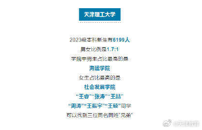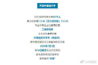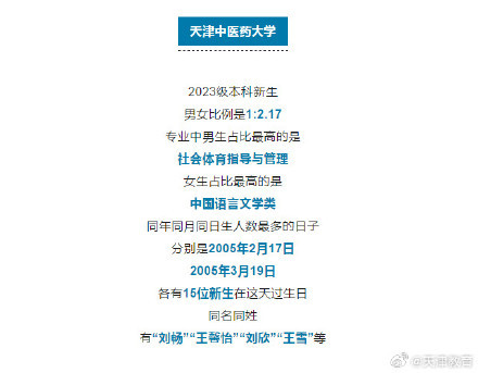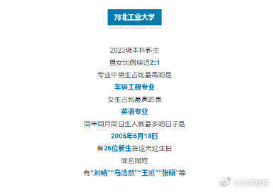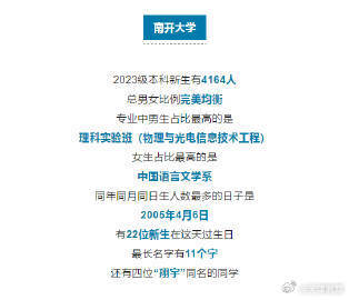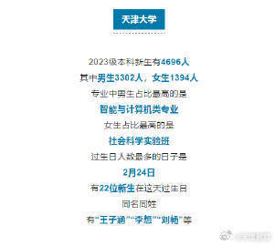 近日,多所在津高校公布2023年新生大數(shù)據(jù),除了男女比例、專業(yè)分布,還公布了新生生日、姓名等數(shù)據(jù),這幾個名字成為爆款