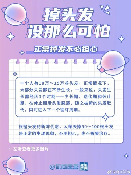 掉發幾乎成了現在中年人和部分年輕人最為“頭禿”的問題之一。實際上,掉頭發并非那么可怕,根據頭發的新陳代謝,人每天掉50~100根頭發是正常的生理現象,不用擔心也不需治療。(健康中國)