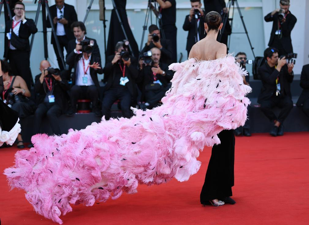 9月1日,在意大利威尼斯,模特芭芭拉·帕爾萬亮相電影《可憐的東西》首映式紅毯。新華社記者 金馬夢妮 攝