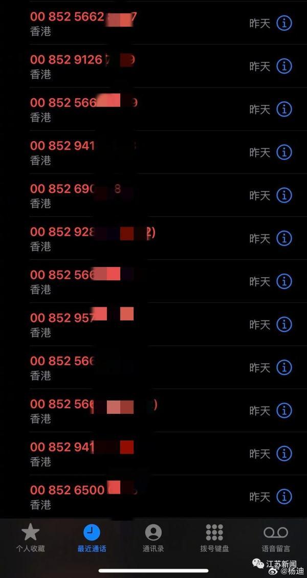 90多個未接來電來自香港地區,