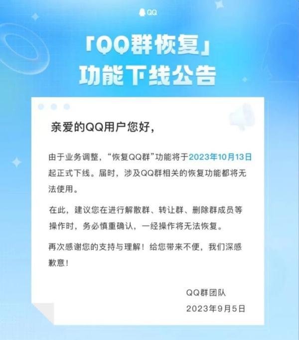 屆時,涉及QQ群相關的恢復功能都將無法使用 。