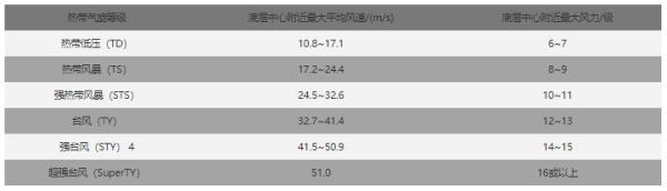 熱帶氣旋等級的劃分以其底層中心附近最大平均風速為標準。