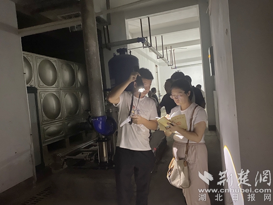 審計人員查看還建樓消防水箱安裝情況。通訊員 供圖