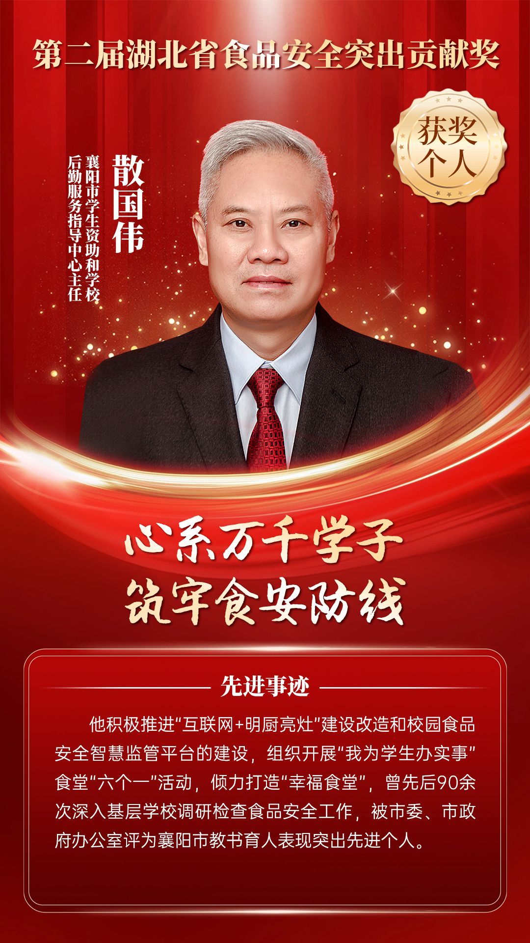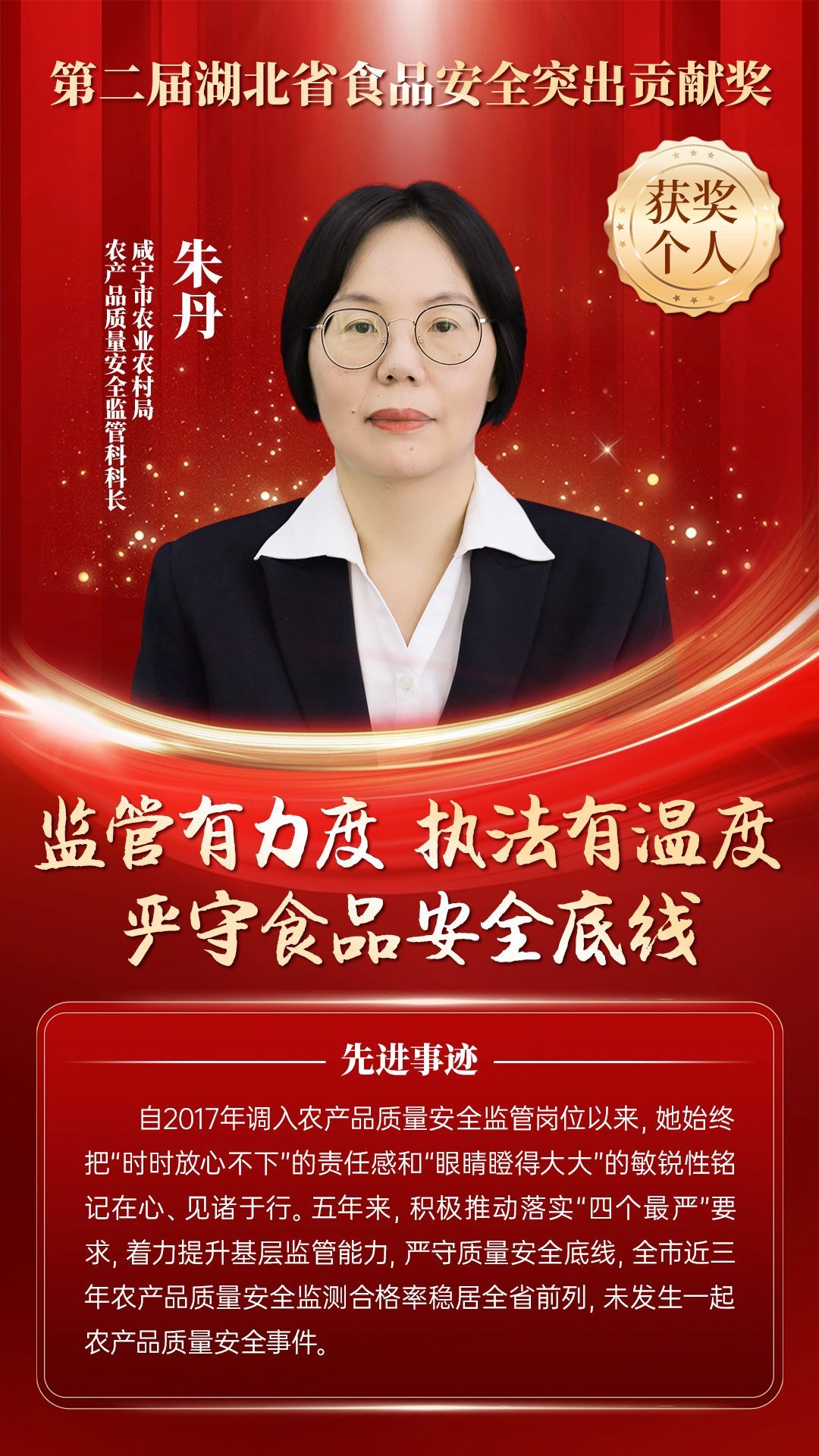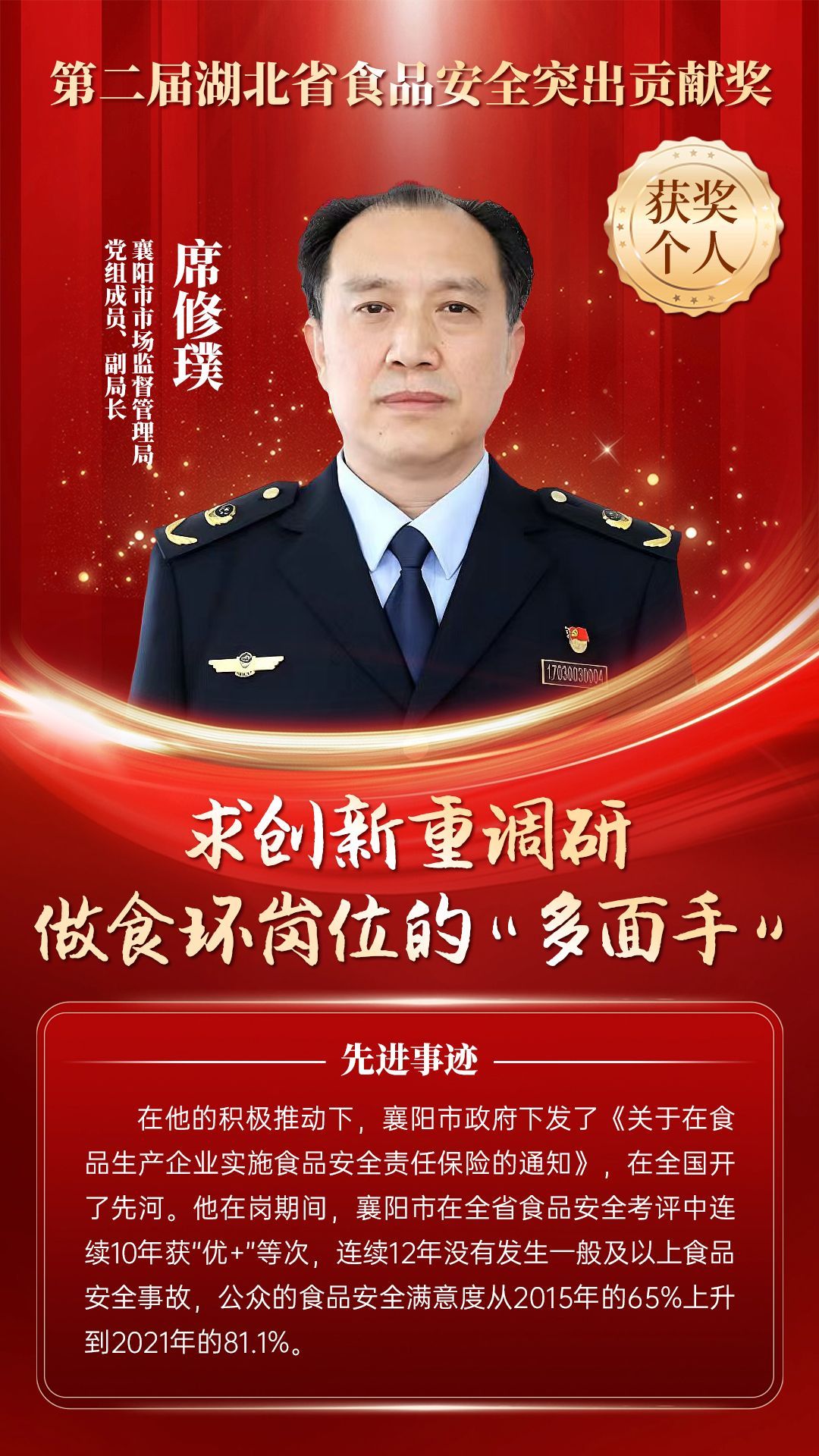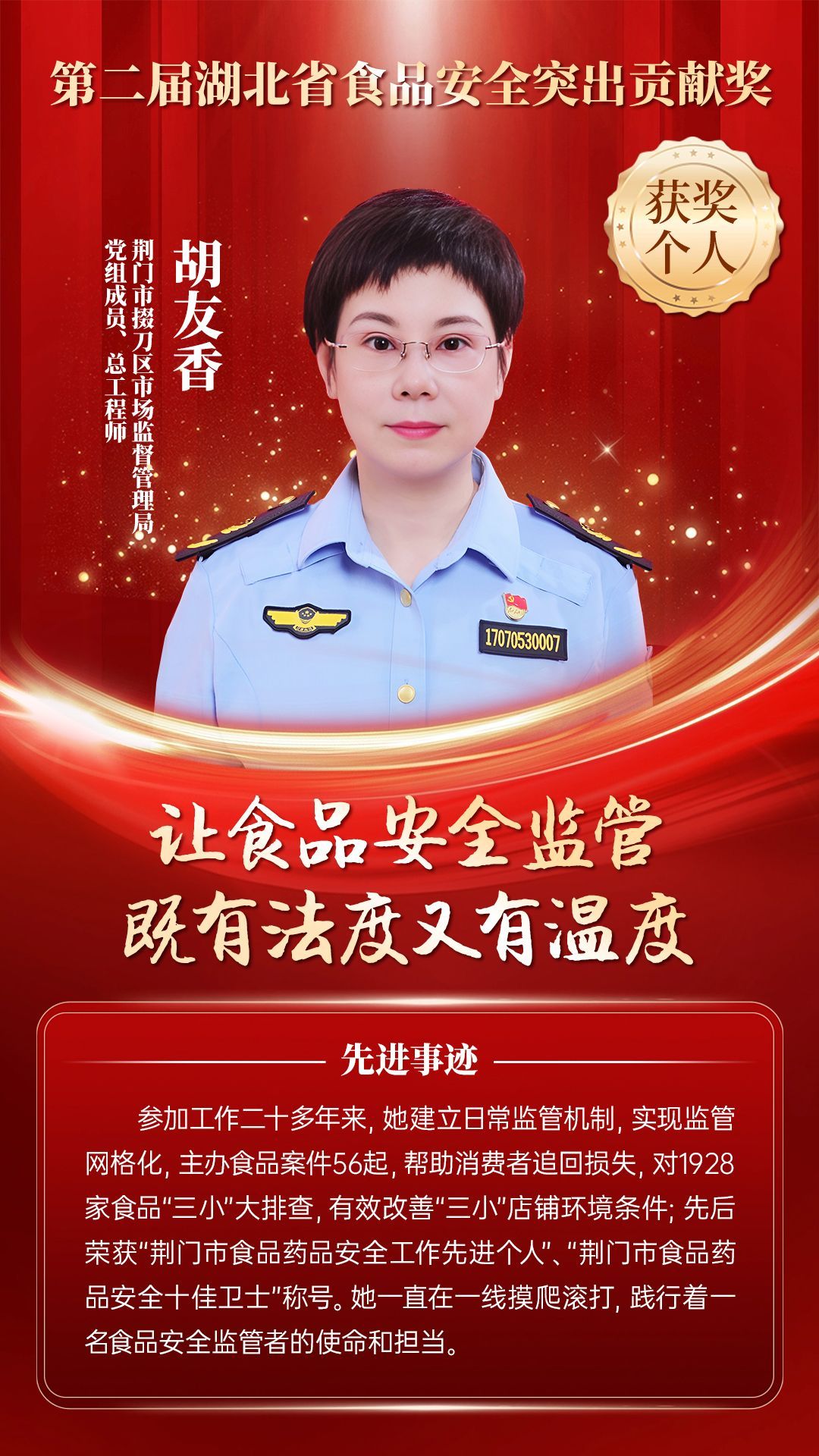 湖北省食品安全突出貢獻獎,是中央評先表彰辦公室批準的全國唯一一個以“食品安全”命名的省級政府獎,自2021年設立以來,每三年評選一次。該獎項主要面向食品安全工作基層一線,旨在表彰先進典型,激勵全省食品安全工作戰線開拓進取、勇于擔當、勤勉工作,不斷提高食品安全保障水平和治理能力,堅決筑牢食品安全底線,全力保障人民群眾“舌尖上的安全”。