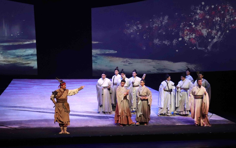 話劇《孔子》融合了音樂、舞蹈、詩歌、繪畫、戲曲、雕塑等藝術(shù)元素,以春秋末期諸侯爭(zhēng)霸為歷史背景,講述了孔子波瀾壯闊而又顛沛流離的一生,生動(dòng)塑造了歷經(jīng)磨難而初心不改的古代思想家、政治家、教育家形象。