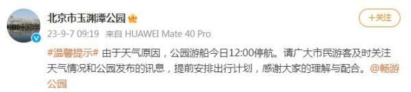 溫馨提示:由于天氣原因,公園游船今日12:00停航。