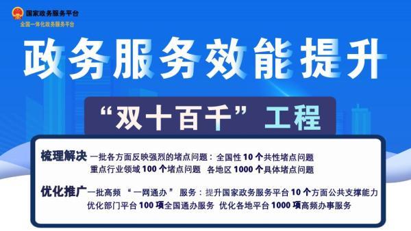 近日,為持續鞏固“雙十百千”工程實踐成果,固化經驗做法,國務院辦公廳印發《關于依托全國一體化政務服務平臺建立政務服務效能提升常態化工作機制的意見》,推動各地區各有關部門形成政務服務效能提升的長效機制,通過解決一個訴求,帶動破解一類問題、優化一類服務、實現一體受益。