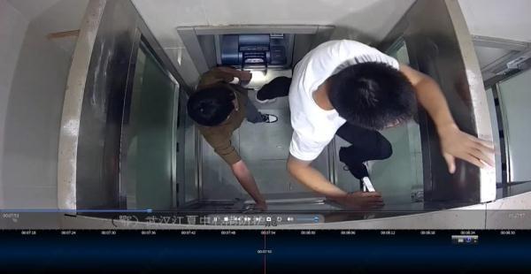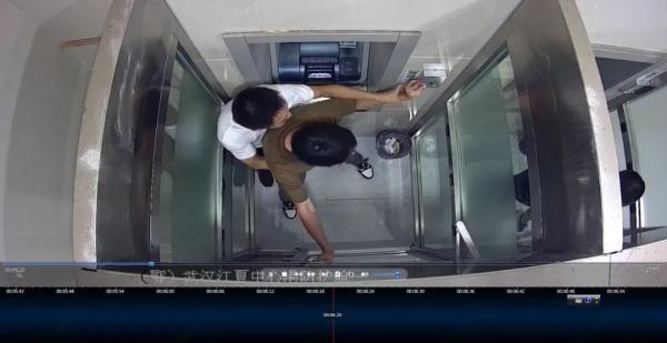 農行武漢分行視頻監控中心接到求助后,迅速調取現場視頻,發現艙內兩人扭打在一起,呼救的灰衣男子被另一名男子捂住面部,試圖阻止其呼救。