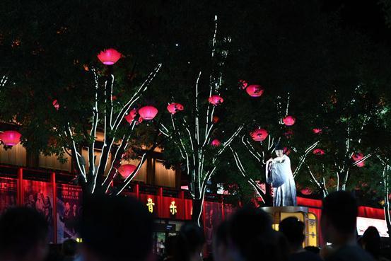 新華網西安9月8日電(記者 王雨馨)漫步大唐不夜城步行街區,仿唐建筑飛檐斗拱、層樓疊榭;華燈初上后燈火璀璨、游人如織。白居易筆下的雁塔題名、詩仙李白的醉酒吟詩、古詩古畫中的簪花仕女、青史留名的房謀杜斷……散落在史書典籍中的故事遺珠,通過現代舞蹈、真人演繹、現場互動等形式,再次呈現在世人面前。