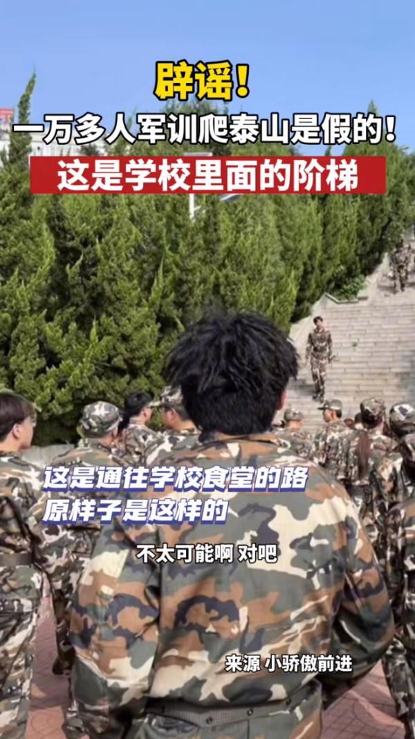 山東一高校軍訓爬“泰山”的視頻