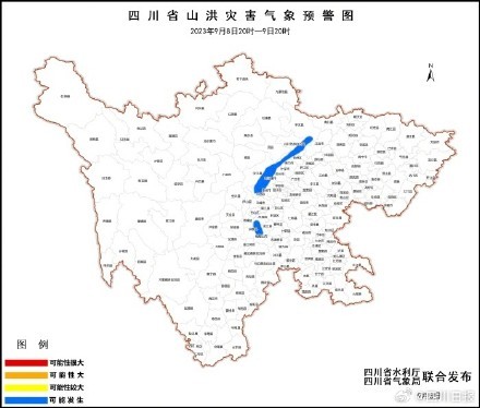 9月8日,四川省水利廳聯(lián)合四川省氣象局發(fā)布山洪災害藍色預警。預警顯示,2023年9月8日20時至9日20時,眉山市洪雅,樂山市夾江、峨眉山,成都市大邑、都江堰、彭州、崇州,綿陽市安州、北川、平武,阿壩州汶川,德陽市什邡、綿竹13個縣(市、區(qū))可能發(fā)生山洪災害。(四川水利)