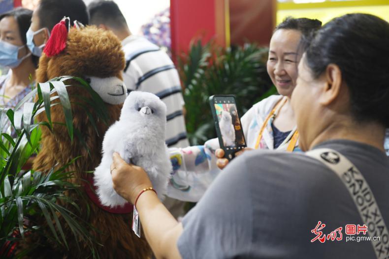9月3日,國家會議中心綜合展區(qū)秘魯展館,游客在拍攝羊駝玩偶。(光明網(wǎng)記者 潘迪攝/光明圖片)