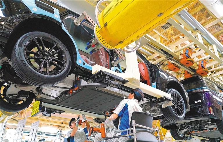 “造車新實力”嵐圖汽車工作人員在進(jìn)行裝配作業(yè)。嵐圖汽車整合全球先進(jìn)制造技術(shù)和理念,全面應(yīng)用5G先進(jìn)技術(shù)打造現(xiàn)代化“智造”工廠,總裝車間是數(shù)字化運營的前沿陣地。