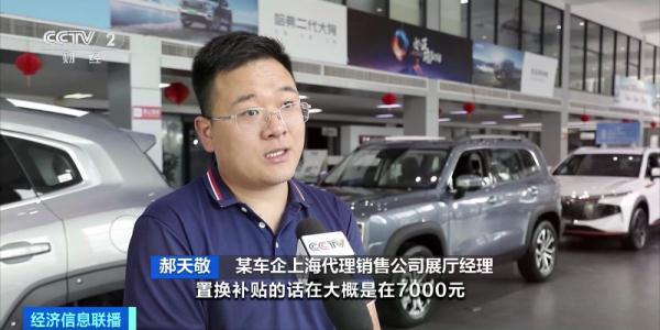 某車企上海代理銷售公司展廳經理 郝天敬:這個車型現在官方讓利大概在6000元,置換補貼大概是7000元。再加上上海市政府出臺的2800元的補貼,綜合優惠達到16000元左右。
