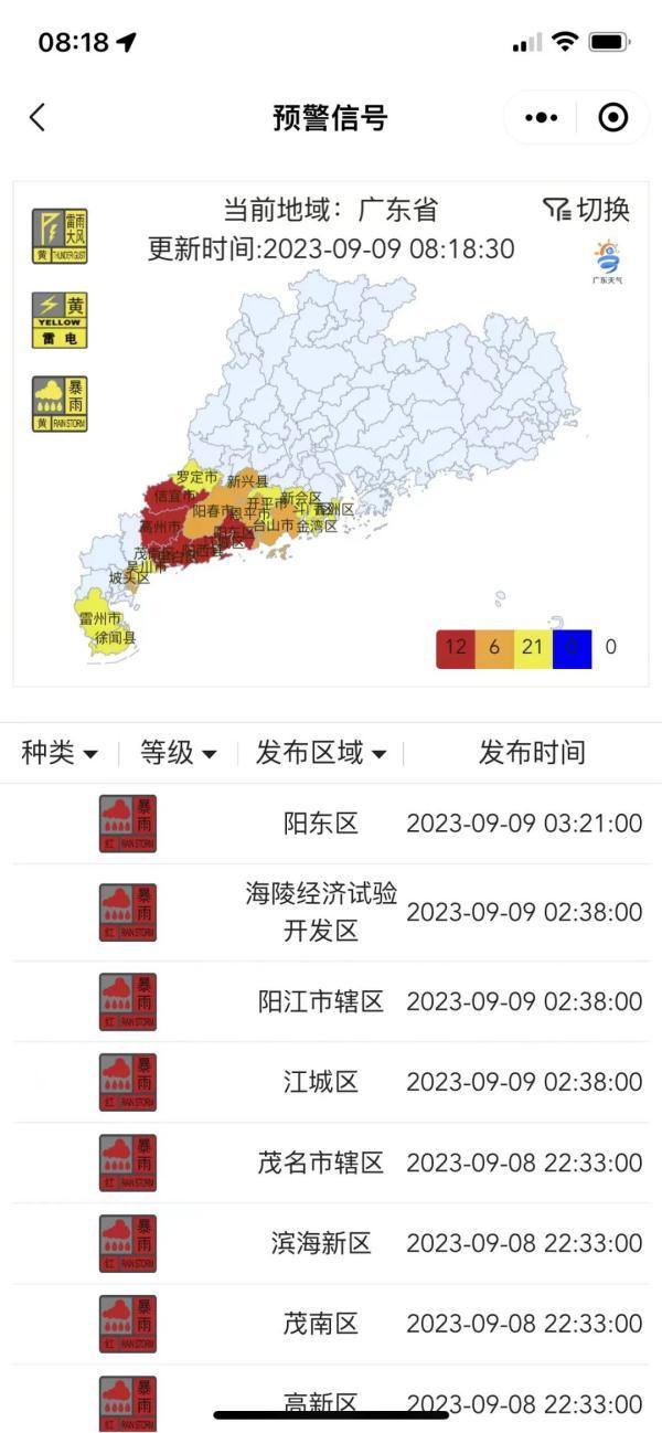 據@廣東天氣,截至今日8時18分
