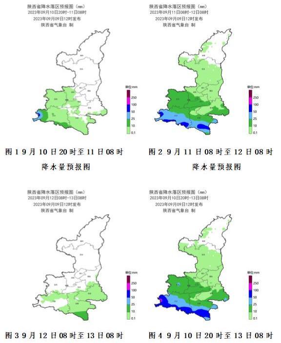 10日夜間至12日陜南南部有暴雨局地大暴雨陜西省氣象服務中心9月9日12時00分發布重要天氣預報:受高原槽和低層低渦切變影響,10日夜間至12日我省中南部將有一次明顯降水過程,主要強降水時段在10日夜間至11日白天,關中西部、陜南西部和南部有中到大雨,其中漢中南部部分和西部部分地方、安康南部局地有暴雨到大暴雨。過程累計降水量:關中西部和南部、商洛5~30毫米,陜南西部和南部30~50毫米,其中漢中西部和南部、安康南部可達60~80毫米,局地100毫米以上(圖4)。降水期間局地伴有雷暴、6級以上短時大風、短時暴雨等強對流天氣,預計最大小時雨強20~40毫米,局地可達50毫米以上。另外,受弱冷空氣和降水共同影響,11日關中和陜南部分地方日平均氣溫下降4~6℃。具體預報:10日夜間:關中西部、陜南中西部有小雨或陣雨,其中漢中西部部分和南部部分地方有中雨,局地大到暴雨(圖1)。11日:陜北南部和關中東部有小雨或陣雨;關中西部、安康南部局地有暴雨;商洛有小雨,南部局地有中雨(圖2)。關中南部、陜南部分地方日平均氣溫下降4~6℃。秦巴山區西段、漢中西部部分地方陣風可達6級以上。12日:陜南東部、秦巴山區有小雨或陣雨,其中安康南部有中雨(圖3)。