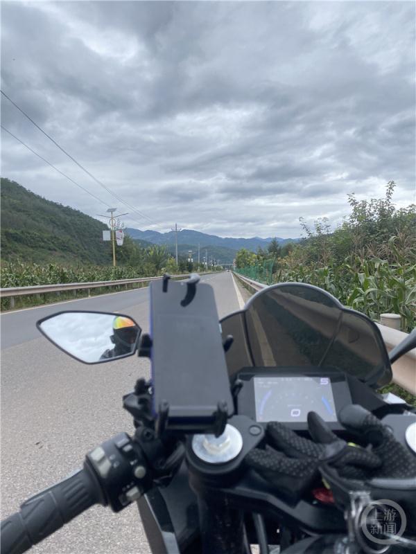 這一行,吉來爾的帶了帳篷、衣服、水杯等用品,還帶上了摩托車保養和騎行防護用具。沿著348國道,他從西昌出發,途經樂山、宜賓、瀘州,最終用了兩天時間到達江津。在路上,他在宜賓的山林里面搭起帳篷住了一晚。