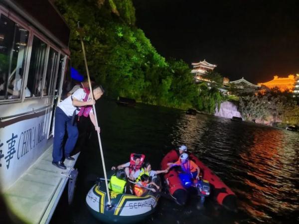 9月8日晚8時30分左右,柳州海事局執法人員在百里柳江開展夜間巡航工作,巡至柳江蟠龍山瀑布水域時,發現一艘載有5人的皮筏艇在江中失控漂流。