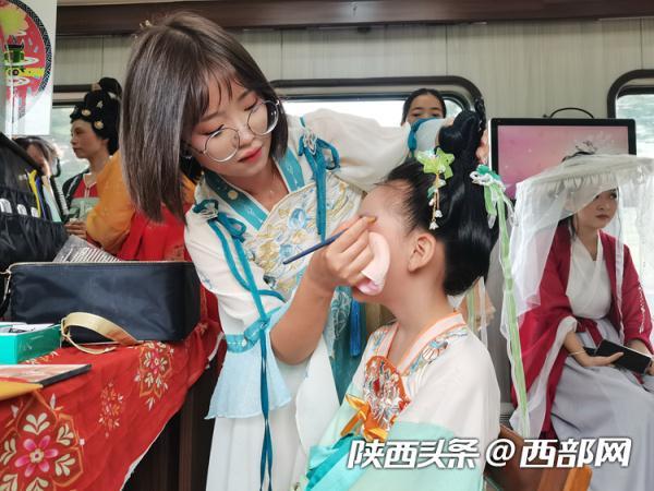 為了讓游客能夠更好地感受漢服之美,本次旅游專列除設置漢服、甲胄展示區外,創造性地設立了專門的化妝區,配備專業化妝師,為游客打造出最完美的唐代形象,體驗從未有過的“上車變身,下車穿越”的獨特旅行感受。