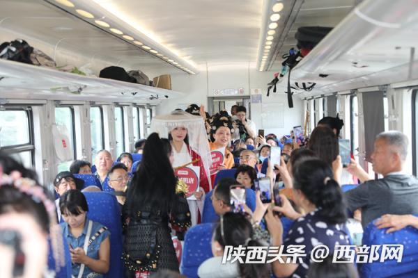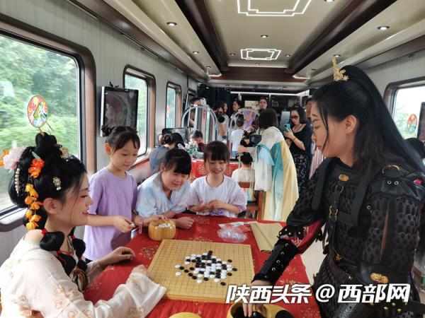 列車精心打造了“漢唐文化體驗館”車廂,為旅客帶來了別樣的體驗感,前來體驗的旅客置身其中,仿佛穿越大唐,這也是國鐵西安局為豐富旅客出行場景,提升客運服務品質推出的新舉措。