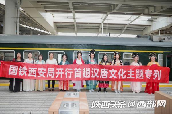 9月9日8時50分,滿載游客的Y592次定制旅游專列從西安站緩緩駛出,前往潼關,這標志著陜西首趟漢唐文化主題旅游專列正式開行。本趟旅游專列由國鐵西安局、有何名唐唐文化體驗館、陜西省旅行社協會聯合打造,以唐代服飾和傳統文化為主創思想,將傳統文化與旅游出行結合起來,將列車變成一個移動的文化載體,為旅游市場注入新的活力。