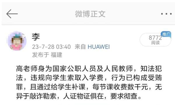 我的舉報是正義的,高老師起訴是對我的打擊報復。