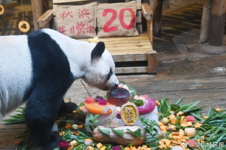 9月8日,生活在深圳野生動物園里的大熊貓“秋浜”迎來了20歲生日,適逢“白露”節氣,“白露”是秋季的第3個節氣。該園為大熊貓“秋浜”舉辦以“秋”為主題的生日會,熱情粉絲也來到現場為“秋浜”送上“秋意”滿滿的祝福。