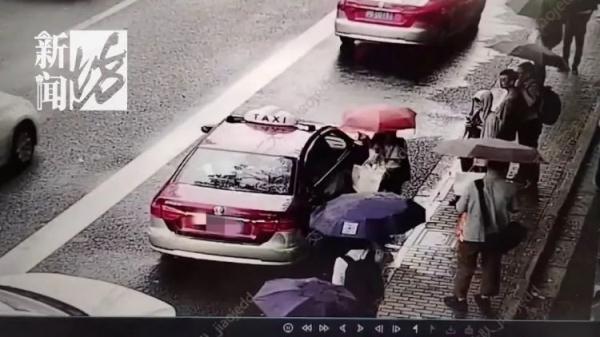 事發時正在下雨,且當天浦東新區新博展會的客流較大,一輛出租車停在路邊待接客,有多名乘客爭先上前向出租車司機詢價,于是發生了讓人驚詫的一幕。