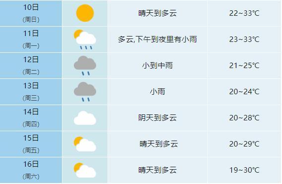 下面來看省會合肥。未來七天,合肥市11日后期至13日有一次降雨過程,受降雨和冷空氣共同影響,12-13日最高氣溫降至24~25℃,14日起天氣轉多云,氣溫回升。