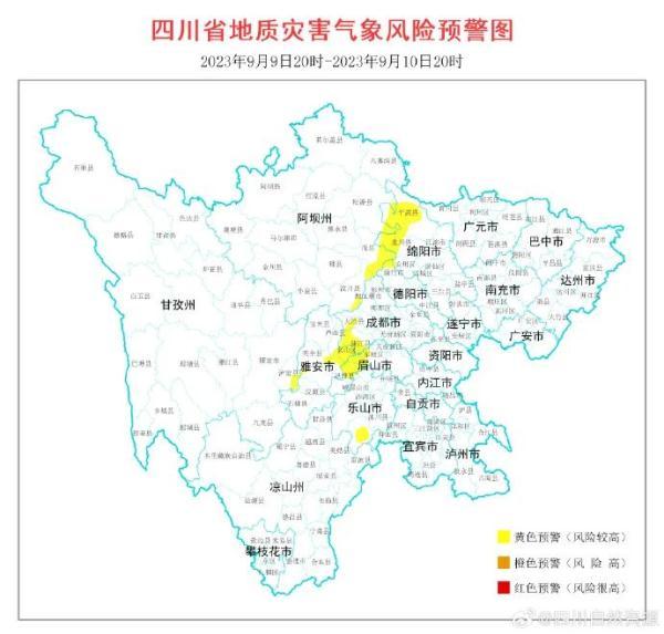 根據四川省氣象臺天氣預報情況,結合四川省地質環境條件,9月9日20時至9月10日20時,全省地質災害氣象風險預警結果如下: