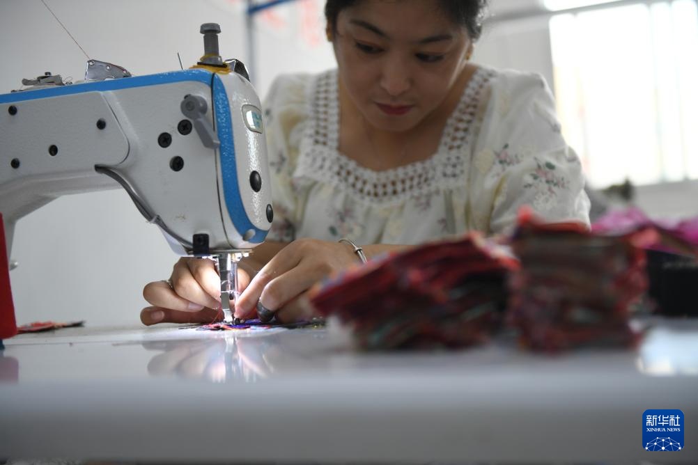 9月8日,在寶雞西秦刺繡文化產業園,千陽繡娘在刺繡。陜西千陽縣是國家級非物質文化遺產“西秦刺繡”的重要發祥地和傳承地。近年來,千陽縣將西秦刺繡作為助農增收的重要產業,推動非遺項目產業化發展,助力鄉村振興。