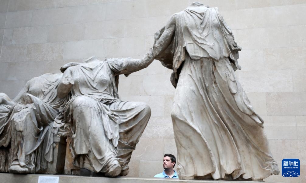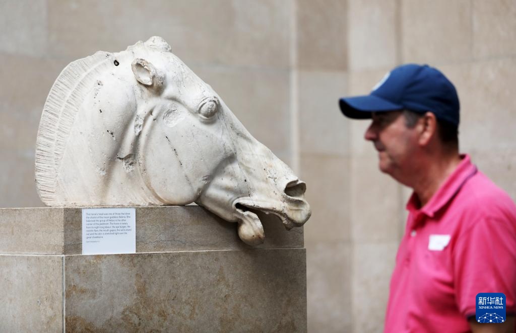 9月7日,一名男子在英國倫敦大英博物館參觀帕特農神廟大理石雕刻。