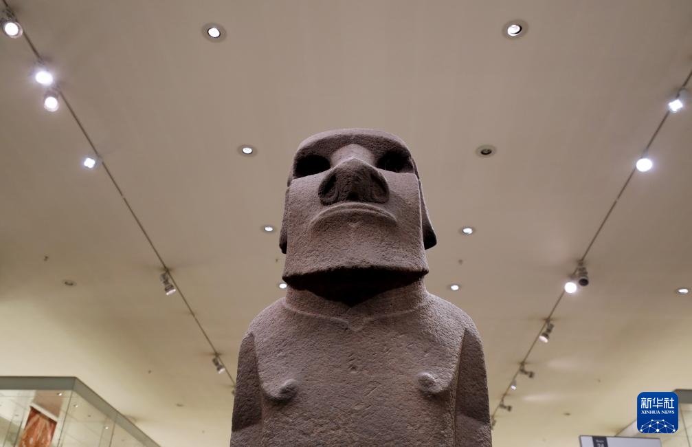 這是9月7日在英國倫敦大英博物館拍攝的“摩艾”石像。