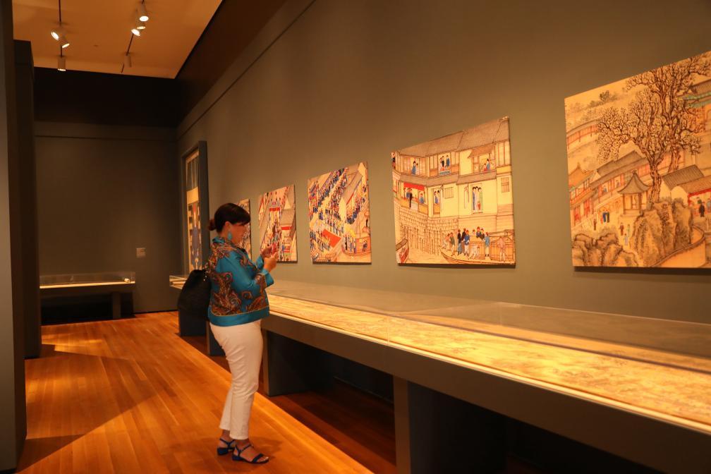 9月6日,在美國俄亥俄州克利夫蘭藝術(shù)博物館,一名女子參觀“人間天堂:中國江南珍寶展”。新華社記者施春攝