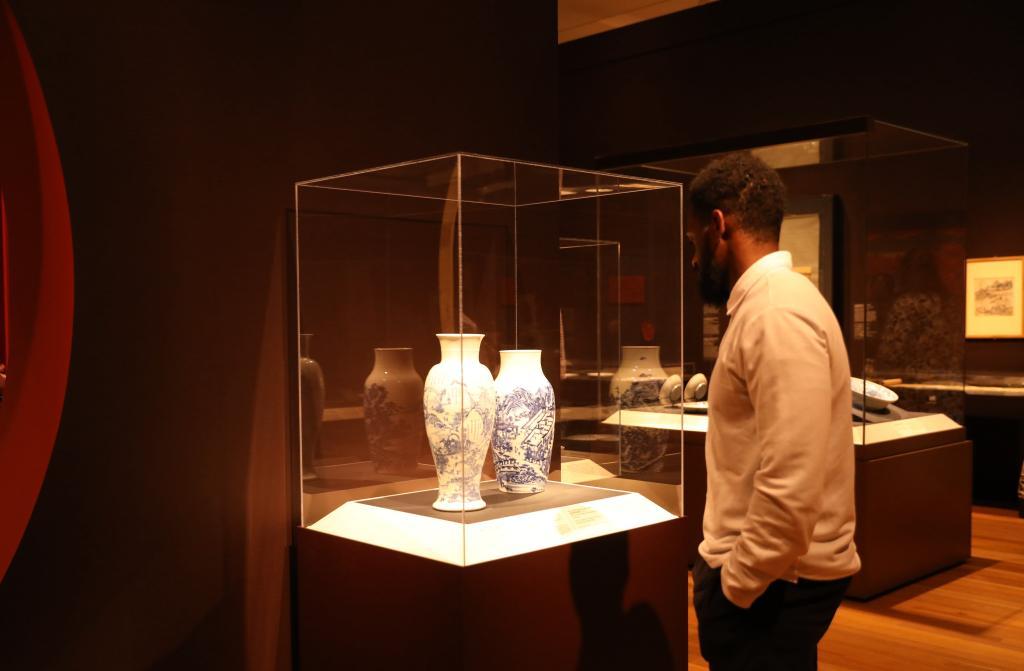9月6日,在美國俄亥俄州克利夫蘭藝術(shù)博物館,一名男子參觀“人間天堂:中國江南珍寶展”。新華社記者施春攝